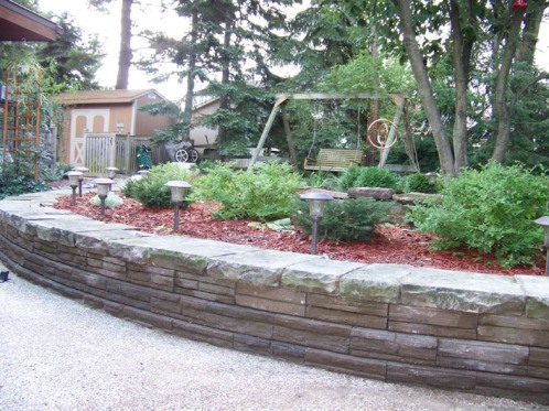 This back yard has become a desirable area to sit with a good book in hand. The retaining wall not only holds back the raised bed but also highlights the gardens. A solid foundation is provided along with the proper drainage behind the wall for a long lasting investment.